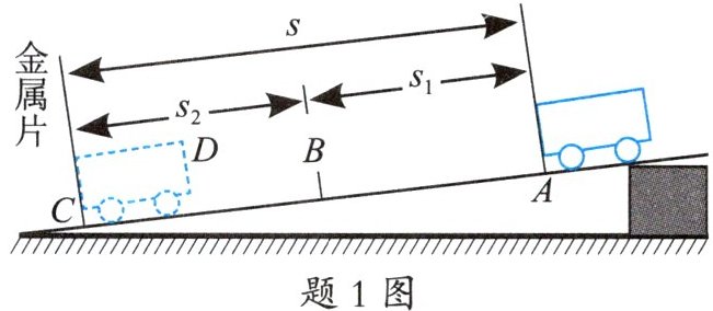 1. 如题1图所示是测量小车沿斜面下滑的平均速度的实验。