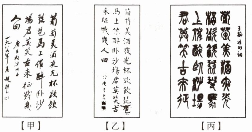 6. 下面是几幅以唐代诗人王翰的《凉州词》为书写内容的书法作品。请按要求完成下列问题。
