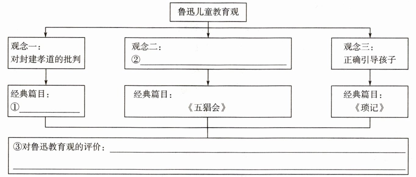 8. 鲁迅常常以温情之语关注儿童的成长现状。请你结合《朝花夕拾》相关内容,完成“鲁迅儿童教育观”的整理。