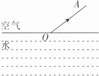 【例2】一束光线从空气斜射入水中,在水面发生反射和折射,已知反射光线$OA$如图所示,请在图中画出它的入射光线和大致的折射光线。