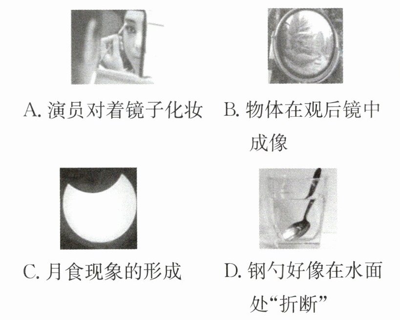 )A.演员对着镜子化妆