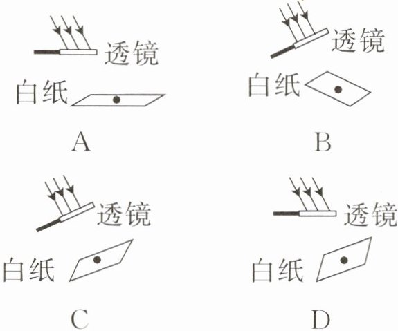 12. 小明利用太阳光测量凸透镜焦距,下列操作最合理的是 (