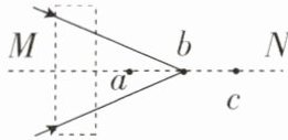 15. 核心素养[科学思维] 如图所示,两条光线会聚于主光轴$MN上的b$点,在虚线框内放入甲透镜后,光线将会聚于主光轴$MN上的c$点;在虚线框内放入乙透镜后,光线将会聚于主光轴$MN上的a$点,则 (
