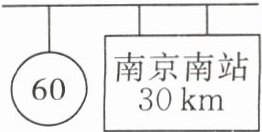 (2)由题图可知,“60”表示此路段限速 60 km/h,“30 km”表示此处距南京南站的路程为 30 km;因此以最大的速度行驶,到达南京南站所用的时间:$ t'=\frac{s'}{v'}=\frac{30\ km}{60\ km/h}=0.5\ h=30\ min $,到达时间为 $ 11:00+30\ min=11:30 $,而列车于 11:46 到达南京南站,因此接小梦不会迟到。