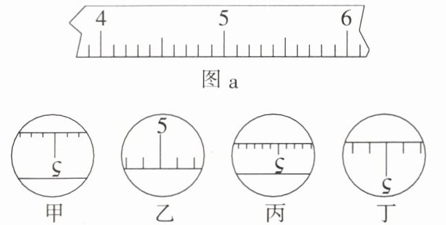 9. 图a是放置在水平桌面上的刻度尺的一部分,甲、乙、丙、丁是通过凸透镜所看到的刻度尺的像。若凸透镜先贴着刻度尺然后逐渐远离,则看到刻度尺的像的先后顺序正确的是(