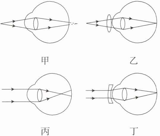 4. 现代生活中,手机给人们带来了许多便利,但长时间看手机屏幕,容易导致视力下降,如图所示的四幅图是眼球成像及视力矫正的示意图,其中属于近视眼的成因及其矫正的是(