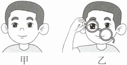 7. 下图是同一个人的两幅照片,乙图中他拿的眼镜(