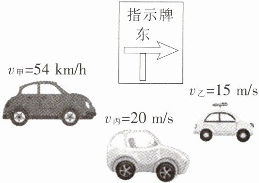 6. 如图所示,甲、乙、丙三辆车在平直公路上匀速行驶,三辆车的速度和方向如图所示。若说乙车向西运动,则选取的参照物是(