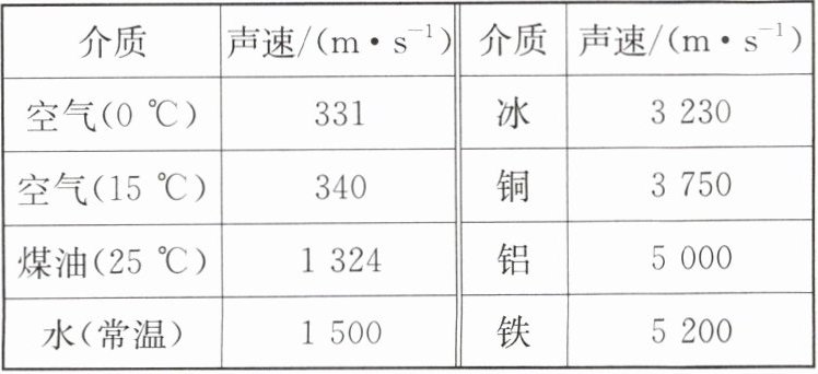 |介质|声速/(m·s⁻^1)|介质|声速/(m·s⁻^1)|