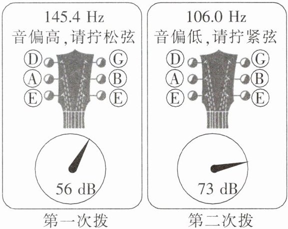 )A.吉他弦发出声音的频率第一次比第二次低