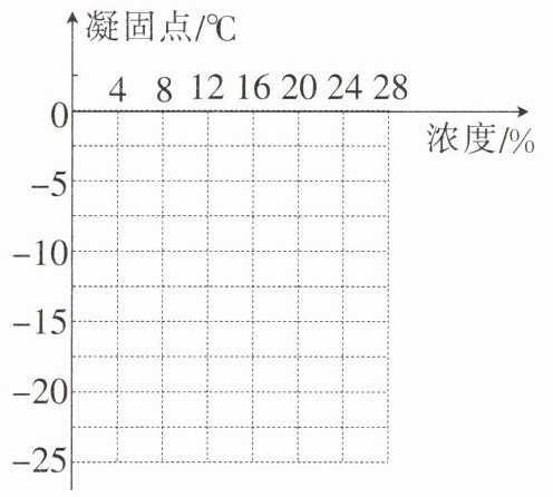 (1)请你根据表中的数据,在图中绘制出盐水凝固点随浓度变化的图像。