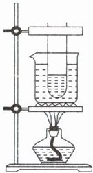 18. 小明组装了如图所示的实验装置,在标准大气压下,向烧杯中倒入适量的水(水的沸点为100℃),试管中装有适量的酒精(酒精沸点为78℃),然后用酒精灯加热足够长的时间,则先沸腾的液体是