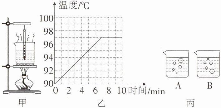 (选填“A”或“B”)图。根据图乙可知,本次实验中水的沸点是97