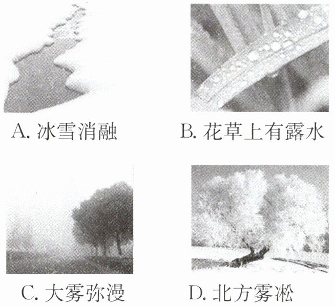 4. 如图所示的各种自然现象中,属于凝华的是(