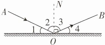 1. 如图所示,一束光射到镜面上发生光的反射,请根据图回答下列问题: