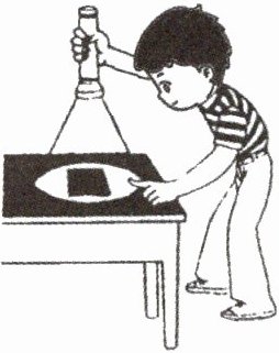 2. 晚上,在桌面上铺一张白纸,把一块小平面镜放在白纸上(镜面朝上),如图所示。当手电筒的光正对着白纸和平面镜照射时,从侧面看上去(