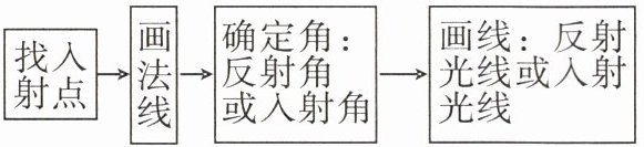找入射点→画法线→确定角:反射角或入射角→画线:反射光线或入射光线