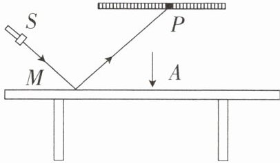 17. 如图所示,平面镜M放置在水平桌面上,光源S发出一束激光射到镜面上,经反射后在标尺上形成光斑P。若在图示位置A用力向下挤压桌面,会导致桌面向下凹陷,则下列说法正确的是(