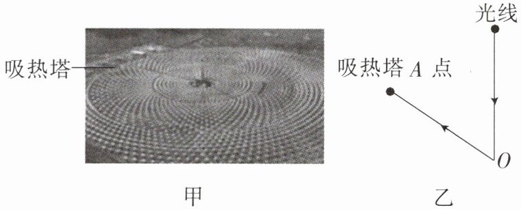 14. 如图甲,我国敦煌的塔式光热电站通过平面镜把太阳光反射后会聚到吸热塔,其中某束光的传播路径如图乙所示,在图乙中画出平面镜的位置。