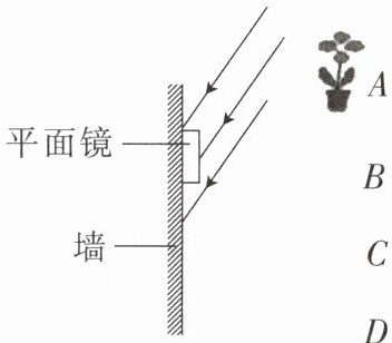 16. 阳光从天窗沿着图示方向照射在墙上的一面镜子上,如果此时想将室内的一盆花放在阳光下生长,应该将它放在(