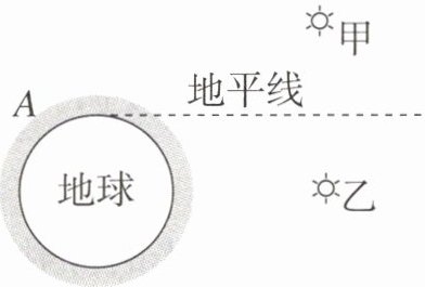 5. “大漠孤烟直,长河落日圆”的诗句中,诗人观察到的落日并非太阳的实际位置,而是光经过不均匀大气时发生______而形成的像。如图所示,站在A点的人恰好看到地平线上的太阳,他所看到的太阳的实际位置应是图中的______(选填“甲”或“乙”)位置。