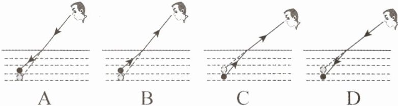 1. 面对清澈见底、看起来不过齐腰深的池水,不会游泳的人千万不要贸然下去,因为人们看到的池水深度和它的实际深度并不相同,下面四幅图能正确解释此现象的是( )