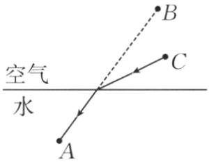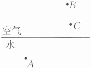 【变式】某次潜水员在水面下观察岸上的一盏灯。如图所示,A点是潜水员的眼睛,B、C两点分别是潜水员看到的灯以及灯的实际位置,请完成潜水员在A点看到河岸上灯的光路图。