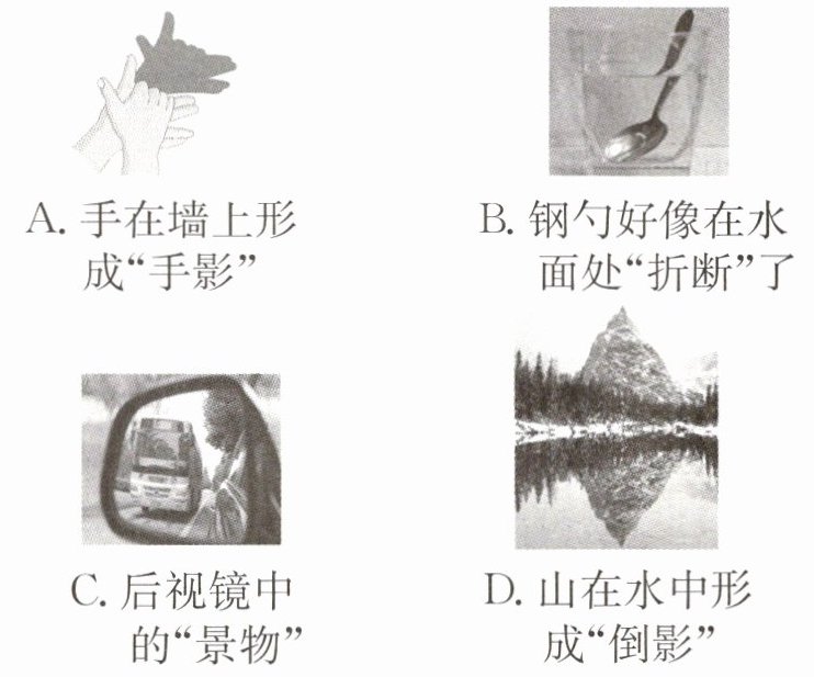 2. 如图所示的四种现象中,属于光的折射现象的是( )
