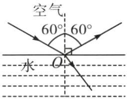 7. 在下图中,光线从空气斜射入水中,画出它的反射光线和大致的折射光线。