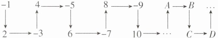观察发现,向下箭头的上方的数是负数,下方的数是正数;向上箭头的下方的数是负数,上方的数是正数,所以排在 B,D 处的数都是负数,排在 A,C 处的数都是正数,故