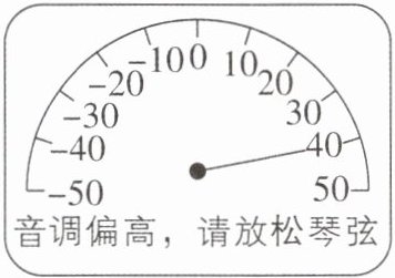 1 [2025 广西柳州期中,中]如图所示的是某古筝调音器软件的界面,已知古筝是标准音时,指针指向 0,指针指向 40 表示音调偏高,需放松琴弦. 当古筝的音调低于标准音 20 时,指针指向的数字是(