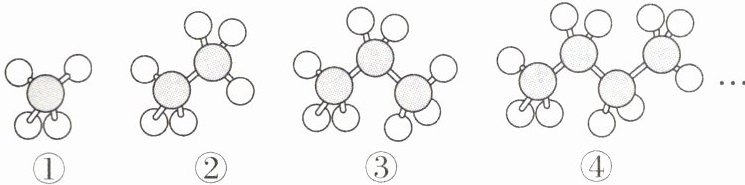 8 [2024 重庆中考 A 卷] 烷烃是一类由碳、氢元素组成的有机化合物质,如图是这类物质前四种化合物的分子结构模型图,其中灰球代表碳原子,白球代表氢原子。第 1 种如图①有 4 个氢原子,第 2 种如图②有 6 个氢原子,第 3 种如图③有 8 个氢原子……按照这一规律,第 10 种化合物的分子结构模型中氢原子的个数是(