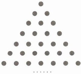 如图是一个三角点阵,从上向下数有无数多行,其中第一行有 1 个点,第二行有 2 个点,…,第 $ n $ 行有 $ n $ 个点……容易发现,三角点阵中前 4 行的点数之和为 10。