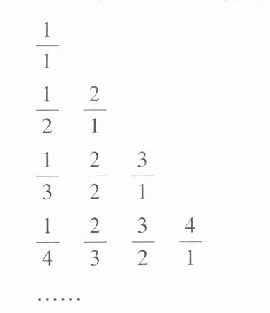 7 [2023 湖南常德中考] 观察下边的数表(横排为行,竖排为列),按数表中的规律,分数 $ \frac{20}{2023} $ 若排在第 $ a $ 行 $ b $ 列,则 $ a - b $ 的值为(