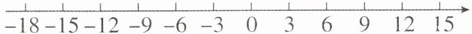 (2)当t = 6时,A点运动路程为6×3 = 18个单位长度,B点运动路程为6×2 = 12个单位长度,故A点表示的数为 - 18,B点表示的数为12,如图所示。 - 18 - 15 - 12 - 9 - 6 - 3 0 3 6 9 12 15