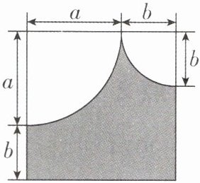 (1)由题意得,阴影部分的面积为$(a+b)²-\frac{1}{4}πa²-\frac{1}{4}πb². (2)$当a=2,b=1时,阴影部分的面积为$(a+b)²-\frac{1}{4}πa²-\frac{1}{4}πb²=(2+1)²-\frac{1}{4}×π×2²-\frac{1}{4}×π×1²=9-π-\frac{1}{4}π=9-\frac{5}{4}π.$