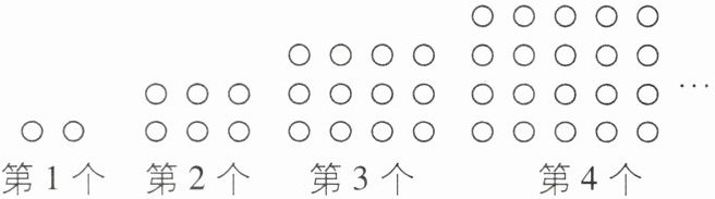 5 [2024 西藏中考] 如图是由若干个大小相同的“○”组成的一组有规律的图案,其中第 1 个图案用了 2 个“○”,第 2 个图案用了 6 个“○”,第 3 个图案用了 12 个“○”,第 4 个图案用了 20 个…“○”,,依照此规律,第 $ n $ 个图案中“○”的个数为