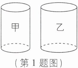 1 [2024天津和平区期末,中]如图,在水平桌面上有甲、乙两个圆柱形容器,其内部底面积分别为$80 cm^2、$$100 cm^2,$且甲容器装满水,乙容器是空的.若将甲中的水全部倒入乙中,则乙中的水位高度比原先甲中的水位高度低了8 cm,则甲的容积是(