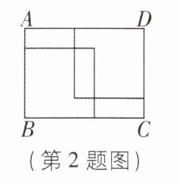 2 [2025重庆南川区期末,中]如图所示,在长方形ABCD中,将三个完全相同的小长方形沿“横 - 竖 - 横”的顺序排列,若AB = 6 cm,BC = 8 cm,则图中一个小长方形的周长等于