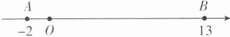 (1)因为点A表示的数为-2,点B表示的数为13,所以$AB=|13-(-2)|=15$,线段AB的中点表示的数为$\frac{13-2}{2}=\frac{11}{2}$,故答案为15,$\frac{11}{2}$.