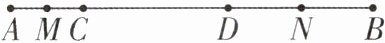 7 [2025 山西太原期中]如图,$ C,D $ 是线段 $ AB $ 上的两点,$ M,N $ 分别是线段 $ AC,BD $ 的中点,若 $ AB = 10,CD = 4 $,则线段 $ MN $ 的长为(