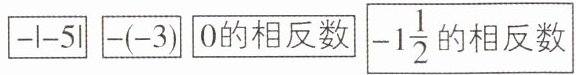 【解】$-|-5|=-5$,$-(-3)=3$,0的相反数为0,$-1\frac{1}{2}$的相反数是$\frac{3}{2}$. 将化简后的数在数轴上表示如图: