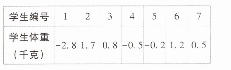 7 [2025 河北邯郸期中,中]某校为了解学生的体重情况,抽取 7 名学生的体重,以 48.0 千克为标准体重,把超过标准体重的千克数记为正数,不足标准体重的千克数记为负数,记录如下: