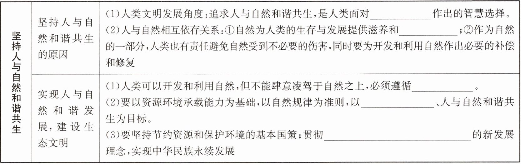 |实现人与自然和谐发展,建设生态文明|(1)人类可以开发和利用自然,但不能肆意凌驾于自然之上,必须遵循______。