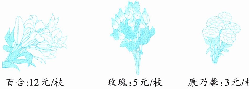 问题:买3枝玫瑰和2枝百合一共要多少钱?