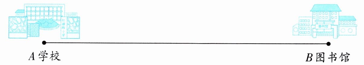 (1)图上1 cm代表实际距离100 m。学校距图书馆有多少米?