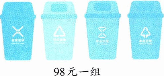 5. 垃圾分类是新风尚。某地政府为推广垃圾分类,为片区 4 所小学、2 所中学分别采购 1 组垃圾桶,一共花了多少元?