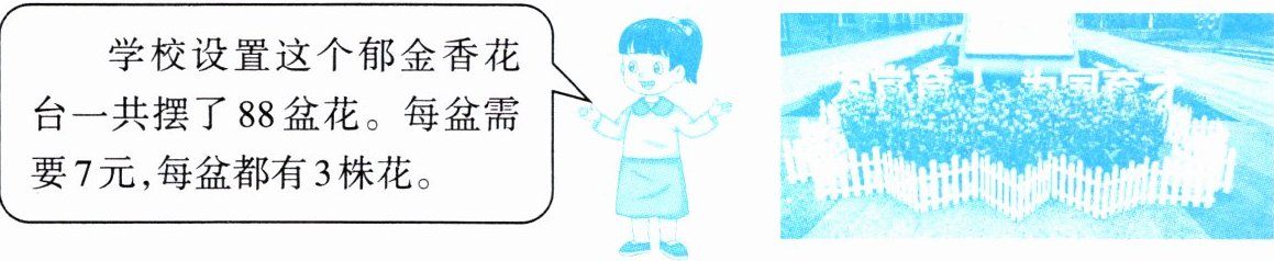 已知一共摆了$88$盆花,每盆需要$7$元。