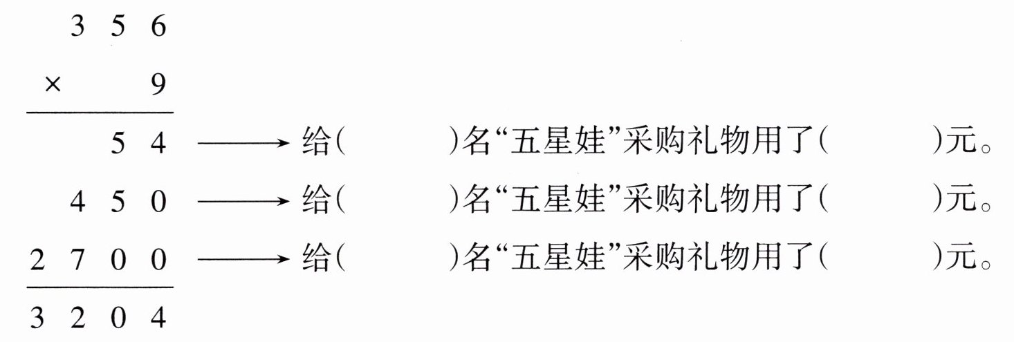 $\longrightarrow$ 给( )名“五星娃”采购礼物用了( )元。