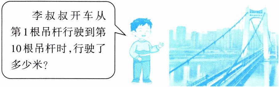 已知每两根吊杆之间相距$15$米,则行驶的距离为: